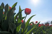 een mooi rode tulp, die richting de zon groeit