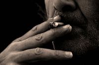 Gedeeltelijk portret van een man die gewoon een sigaret rookt.