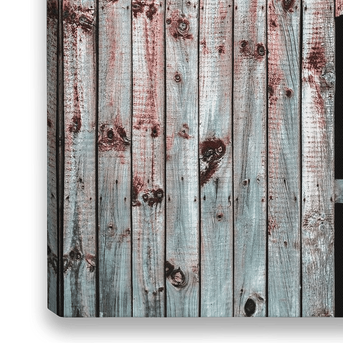 Dit is de verweerde zijkant van een schuur, die decenia is blootgesteld aan de elementen en nog altijd fier rechtop staat.