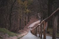 landschap met een trap op de Posbank in Rheden, Gelderland, waar de scherpte op de leuning ligt, en de achtergrond dof is
