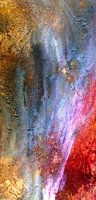 ...een spel met kleuren en materialen, zich laten drijven - leiden tot een subtiel spel van vormen, contrasten en vervormingen...scheuren en depressies tonen een spannend spectrum tussen worden en vergaan...