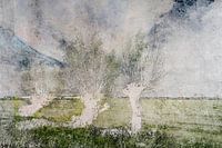 De wind in de wilgen. 3 wilgen bij Oosteind in Noord-Brabant. Digitaal bewerkte foto. Varend door Nederland kom ik op dit soort plaatsen.