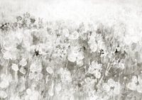 Een subtiele bloemenfoto met kleine bloemetjes voor in de woonkamer. Het straalt optimisme en vrolijkheid uit. De schoonheid van de natuur is altijd een onuitputtelijke bron van inspiratie. Bloemfantasieën zijn kunstig geënsceneerd..bloemen, bloesems, bladeren....Waterverfschilderij met fantasiebloemen in ingetogen crèmekleurige taupe- en grijstinten