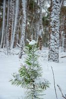 De winter doet zijn best om het dennenbos te bedekken met sneeuw. Dat is al lang geleden in Holland.