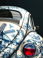 aanblik van de Achterkant van een oude volkswagen kever voorzien van Delfts blauwe afbeeldingenMargriet Hulsker aanblik van de Achterkant van een oude volkswagen kever voorzien van Delfts blauwe afbeeldingenMargriet Hulsker