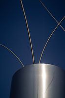 detail van een kunstwerk ergens in Barcelona van ijzer, de weerkaatsing van het zonlicht in het metaal geeft een abstract beeld