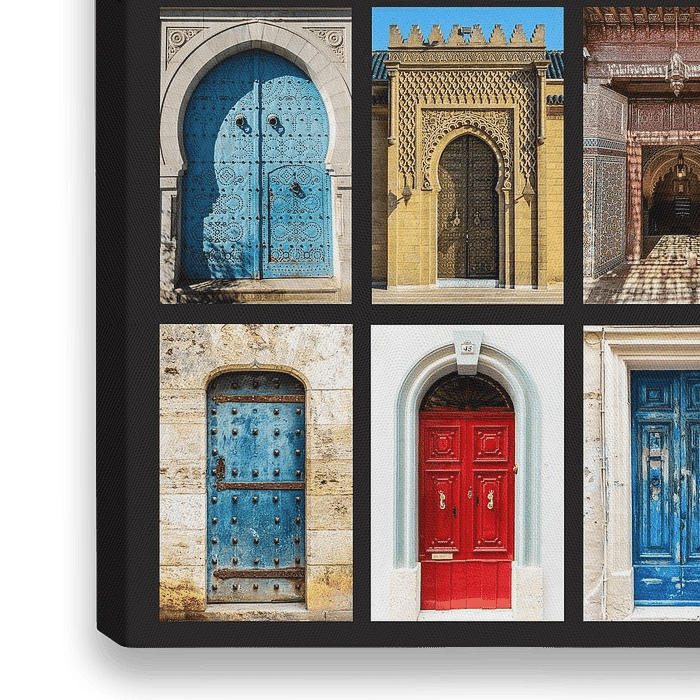 Collage Verzameling van indrukwekkende en kleurrijke oosterse portalen Deuren en poorten in Marokko in Marrakesh Fes en Rabat Meknes