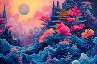 oosterse japanse kleurrijke neon moderne kunst met fictieve verzonnen personen
