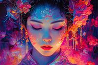 oosterse japanse kleurrijke neon moderne kunst met fictieve verzonnen personen