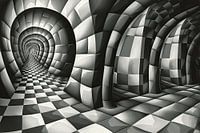 Digitale gegenereerde surrealistische absurde optische illusie met dieptewerking en felle kleuren