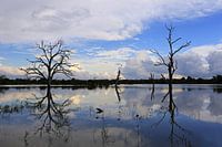 reflectie van dode bomen in een meer in het Udawalawe N.P. in Sri Lanka