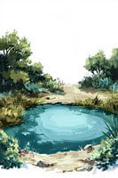 Ontsnap aan de drukte van alledag en dompel jezelf onder in de serene schoonheid van dit digitale kunstwerk. Een verborgen poel, omgeven door weelderig groen, nodigt uit tot rust en reflectie. De levendige kleuren en het spel van licht en schaduw creëren een sfeer van mysterie en verwondering. Breng een vleugje natuur in huis en laat je…