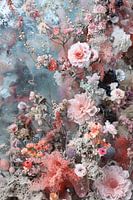 Dit kunstwerk is een ware explosie van kleur en textuur, met een overvloed aan bloemen die uit een abstracte achtergrond tevoorschijn komen. De levendige kleuren en gedetailleerde penseelstreken creëren een gevoel van diepte en beweging, waardoor je als kijker wordt meegezogen in een andere wereld. Het is een perfect stuk om een vleugje magie en verwondering toe te voegen aan elke ruimte.