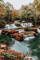Dompel jezelf onder in de rustgevende schoonheid van dit adembenemende landschap. Een reeks watervallen stroomt sierlijk over met mos bedekte rotsen, omringd door een weelderig bos in herfstkleuren. Het kristalheldere water glinstert in het zonlicht, terwijl de bomen een caleidoscoop van oranje, geel en groen bieden. Dit kunstwerk…