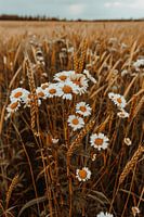 Een veld vol gouden korenaren wiegt zachtjes in de zomerbries. Tussen de halmen steekt een boeket wilde margrieten fier omhoog, hun witte bloemblaadjes stralen in het zonlicht. De lucht erboven is een canvas van zachte pastelkleuren, een serene herinnering aan de schoonheid van de natuur. Deze foto vangt de essentie van een rustige…