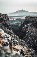 Dit adembenemende kunstwerk vangt de rauwe schoonheid van een vulkanisch landschap. De majestueuze vulkaan domineert de horizon, terwijl de voorgrond een dramatisch contrast biedt met zijn grillige rotsformaties en gestolde lavastromen. De subtiele kleurschakeringen van grijs, bruin en beige versterken het gevoel van tijdloosheid en de…