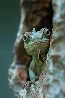 Ontdek de betoverende schoonheid van de natuur met deze adembenemende foto van een kameleon die zich verschuilt in een boomholte. De levendige kleuren en het scherpe detail brengen dit fascinerende wezen tot leven, terwijl de compositie de kijker uitnodigt om de ingewikkelde details van de schors en het gebladerte te verkennen. Perfect…