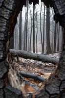Dit adembenemende kunstwerk vangt de serene schoonheid van een bos na een regenbui. Het perspectief is uniek, gezien door een opening in een omgevallen boom, waardoor een gevoel van mysterie en intrige ontstaat. De zwart-wit tinten versterken de dramatische sfeer en benadrukken de textuur van de schors en de delicate regendruppels. Dit…