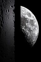 Dit adembenemende kunstwerk legt de serene schoonheid van de maan vast in een krachtig zwart-wit contrast. De gedetailleerde textuur van het maanoppervlak wordt prachtig weergegeven, met diepe kraters en uitgestrekte vlaktes die het oog uitnodigen om te dwalen. De mysterieuze duisternis van de ruimte vormt een dramatische achtergrond, waardoor de maan als een stralend juweel naar voren komt. Dit stuk is perfect voor liefhebbers van astronomie, minimalistische kunst en iedereen die de tijdloze allure van de maan waardeert.