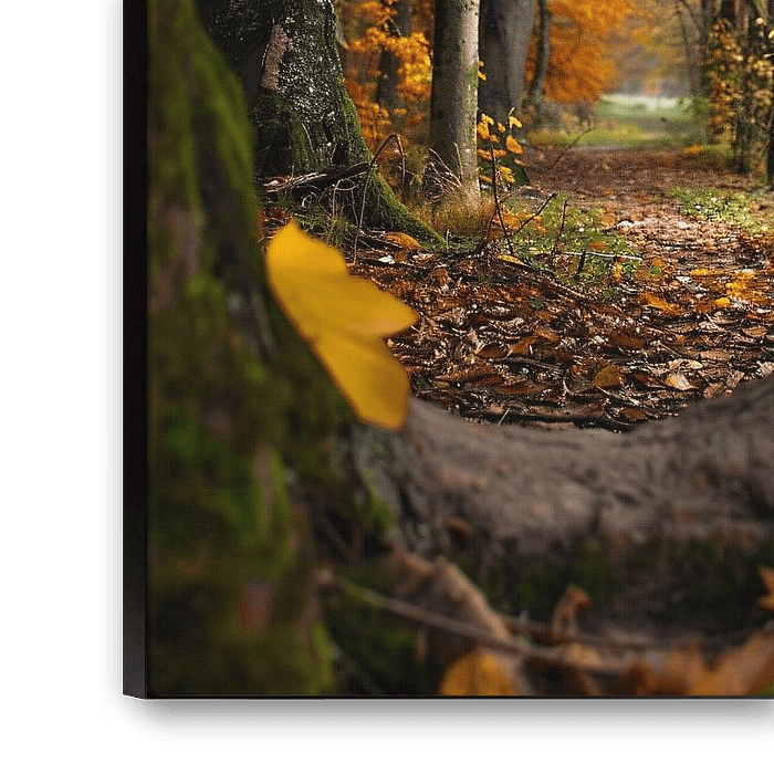 Laat de betoverende schoonheid van de herfst je huis vullen met deze adembenemende print. Een doorkijkje door een holle boom onthult een schitterend bosbad in warme herfsttinten. De zonnestralen spelen tussen de bladeren en creëren een magisch schouwspel van licht en schaduw. Elk detail, van de textuur van de schors tot de delicate nerven in de bladeren, is met uiterste precisie vastgelegd. Deze print brengt de rust en sereniteit van de natuur rechtstreeks in je woonkamer, en is een perfecte aanvulling op elke interieurstijl.