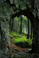 Dit betoverende kunstwerk vangt de essentie van de natuur in zijn puurste vorm. Een doorkijkje door een knoestig gat in een oude boom onthult een weelderig boslandschap, badend in zacht, natuurlijk licht. Het mos bedekte bosgrond en de statige bomen nodigen uit tot een moment van rust en reflectie. Dit stuk is een eerbetoon aan de tijdloze schoonheid van de natuur en een herinnering aan de sereniteit die het kan brengen. Een perfecte aanvulling voor elke ruimte waar een vleugje rust gewenst is.
