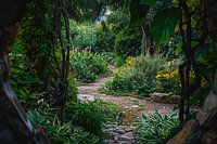 Stap binnen in een betoverende wereld vol natuurlijke schoonheid met dit prachtige kunstwerk. Een kronkelend pad nodigt je uit om de geheimen van een weelderige tuin te ontdekken, waar zonlicht door het bladerdak filtert en levendige bloemen in bloei staan. Elke penseelstreek vangt de essentie van de natuur, van de delicate texturen van…