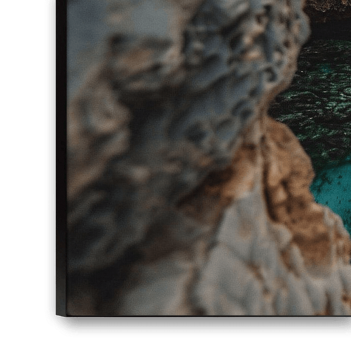 Laat de schoonheid van de natuur je interieur verrijken met deze adembenemende fotoprint. Een turquoise waterweg kronkelt door een imposante rotskloof, omlijst door weelderig groen. Het kristalheldere water reflecteert de lucht en de rotsen, waardoor een betoverend schouwspel ontstaat. Deze print brengt de rust en sereniteit van de natuur in huis en is een perfecte aanvulling op elke moderne interieurstijl.