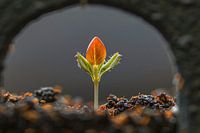Dit kunstwerk legt de essentie van nieuw leven vast, een krachtig symbool van groei en veerkracht. De zachte, delicate vormen van de ontkiemende plant worden prachtig benadrukt tegen de donkere, aardse achtergrond. Het spel van licht en schaduw creëert een gevoel van diepte en dimensie, waardoor de kijker wordt uitgenodigd om de…