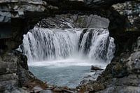 Dit prachtige ontwerp toont een serene waterval, gezien door een natuurlijk gevormd rotsraam. De krachtige stroming van het water tegen de rust van de omliggende natuur creëert een harmonisch beeld dat zowel kracht als kalmte uitstraalt. Het monochrome kleurenschema accentueert de natuurlijke elementen, waardoor het ontwerp perfect past…