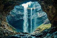 Dit prachtige ontwerp toont een verborgen waterval die vanuit een grot wordt gezien. De combinatie van het stromende water, de rotsformaties en het groene landschap creëert een betoverend beeld dat rust en sereniteit uitstraalt. Ideaal voor iedereen die houdt van natuur en rust in hun interieur. Dit kunstwerk kan een kalmerend effect…
