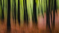 Met opzet bewogen foto en digitaal bewerkt of dromerig kleurrijk beeld te creëren van een bos. Kijk en bemerk wat het met je gedachten doet.