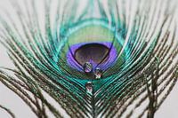 Koop dit vogel kunstwerk drie druppels op pauwenveer van Monique de Koning op canvas, aluminium dibond, (ingelijste) fotoprint, behang en ArtFrame, op maat geprint in Fine-Art kwaliteit.