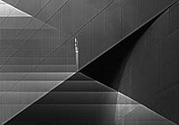 abstracte montage van twee verschillende architectuur foto's van een gevel en een trappartij in twee kunstmusea in Nijmegen en Dusseldorf