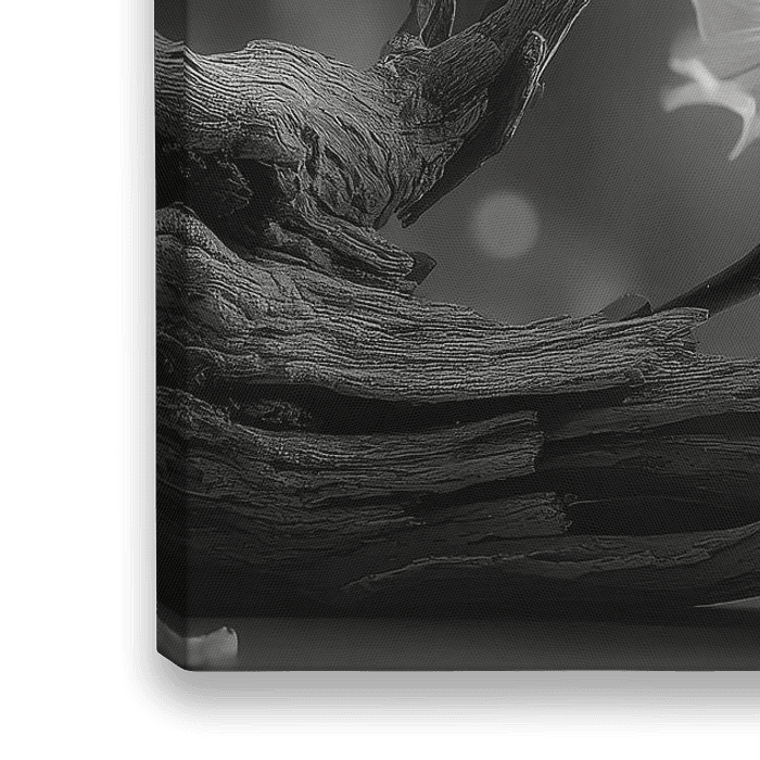 Onze schilderijen met drijfhout en bloemen vangen precies dat gevoel – van rust, reflectie en de mysterieuze taal van de natuur.