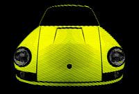 Een oude sportwagen, kunstig digitaal vervormd, wordt een dynamische metgezel door kleur en vorm. De auto verschijnt in verschillende, levendig vervormde kleuren - fel geel, elke versie overgoten met abstracte patronen en digitale textuur. De klassieke lijnen van de auto zijn gedeeltelijk vervormd, uitgerekt of gefragmenteerd, terwijl…
