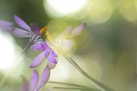 Twee paarse krokussen door elkaar heen