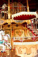 een feest voor jong en oud, deze gestapelde draaimolen met prachtige ornamenten en schitterend beschilderde details op de paarden en koetsen.