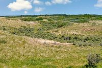 Een beeld van het duinlandschap uit Noord-Holland, het duin waterwingebied PWN omgeving van Castricum. Een zomers landschap langs de kustlijn van Nederland. Met ook zicht op een duinmeertje in het duingebied.