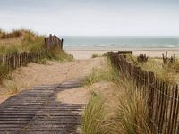 van strand naar zee tussen de duinen door. zeewind en zeegeur opsnuivend.