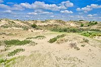 Een voorjaarsbeeld van een duinlandschap met de kustduinen. Een weids uitzicht van een landschap vanuit de Amsterdamse waterleidingduinen. Het beheer word hier gedaan door waternet. Het is ook een waterwingebied gebied van waternet.