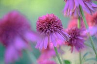 close up van een echinacea purpurea, ofwel rode zonnehoed, met een frisse groene achtergrond