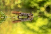 Koop de foto eekhoorn lopen over water van gea strucks op canvas, aluminium dibond, (ingelijste) fotoprint, behang en ArtFrame, op maat geprint in Fine-Art kwaliteit.