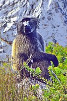 Close-up met een baviaan in het groen gemengde techniek