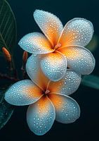 Delicaat en toch duurzaam, de frangipani straalt tropische charme uit met zijn zachte bloemblaadjes en bedwelmende geur. Deze bloesem, die in vele culturen wordt vereerd, symboliseert liefde, leven en spirituele toewijding. Haar stralende schoonheid herinnert aan eenvoud, sereniteit en de tijdloze elegantie van de natuur.
