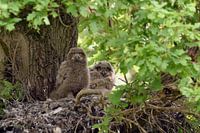 Onze foto toont jonge, nog niet uitgevlogen oehoes op hun nest in een oude eik midden in het bos. Het nest is een oud haviksnest dat door de oehoes is overgenomen. De jonge oehoes kijken aandachtig en geïnteresseerd in de richting van de camera. De geluiden van de ontspanner van de camera zijn hun waarschijnlijk niet ontgaan.…