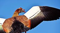Close-up van een nijlgans op het dak van een huis