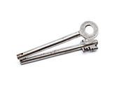 op een witte achtergrond liggen er oude sleutels voor een slot te openen