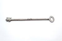 op een witte achtergrond liggen er oude sleutels voor een slot te openen