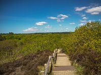 een mooie wandeling naar beneden richting de groene natuur. dit is een prachtig uitzicht.