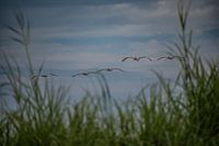 Koop dit landschapskunstwerk een vlucht Pelikanen van Ton Wever op canvas, aluminium dibond, (ingelijste) fotoprint, behang en ArtFrame, op maat geprint in Fine-Art kwaliteit.